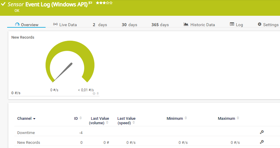 This sensor might not work anymore after Windows updates of June 2021. For more information, see the Knowledge Base: My Event Log (Windows API) sensors fail after installing Windows updates. What can I do?