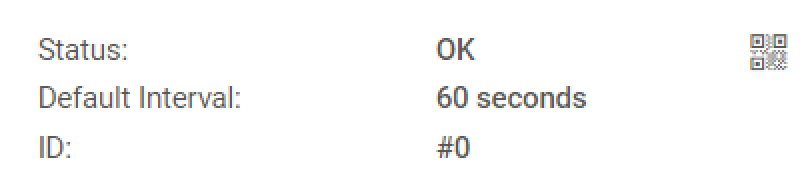 This element displays the status of the selected object, the interval in which PRTG scans the object, the ID of the object, and the QR code for the selected page. If you use a PRTG app for iOS or Android, you can scan the code to directly view the object on your mobile device. Click the QR code to enlarge it for scanning.