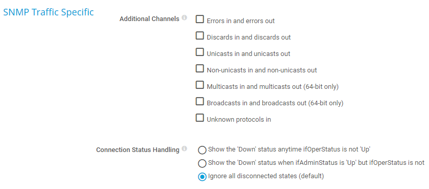 • Show the 'Down' status anytime ifOperStatus is not 'Up': Show the Down status for a disconnected interface. This applies every time the ifOperStatus of the interface is not 'up'.