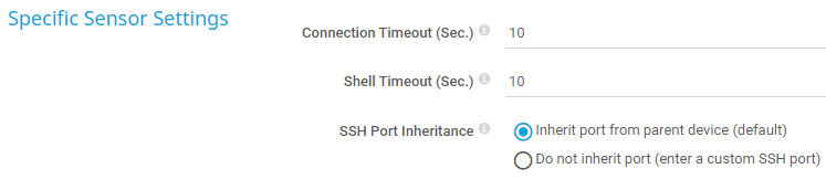 • Do not inherit port (enter a custom SSH port): Define a custom port number below and do not use the port number from the parent device settings.